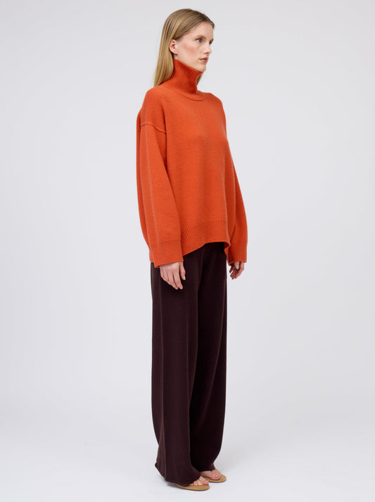 Burnt Orange Oversized Roll Neck Cashmere Jumper
