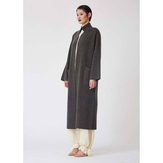 Dark Grey Ribbed Knit Cashmere Long Coat