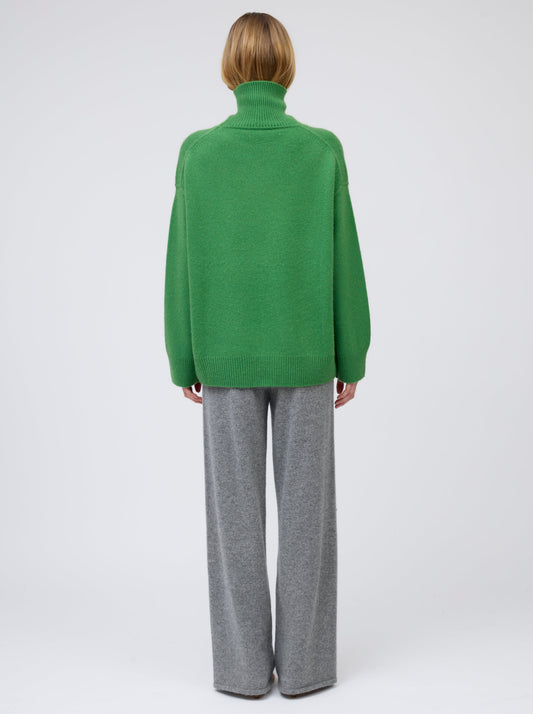 Pine Green Oversized Roll Neck Cashmere Jumper
