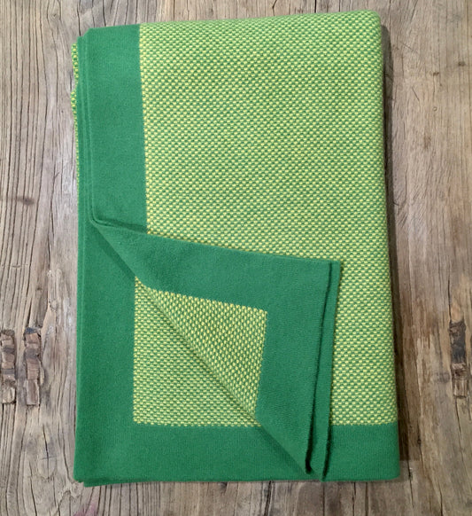 Mint Green/Yellow Checkerboard Cashmere Blanket
