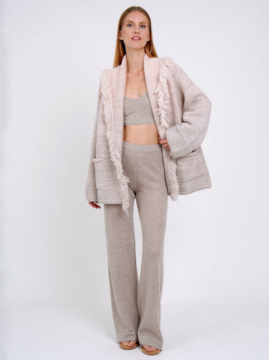 New Beige Cashmere Knit Kimono Jacket