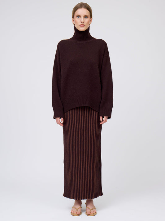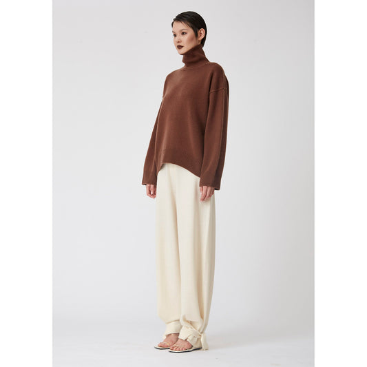Mahogany Brown Oversized Roll Neck Cashmere Jumper