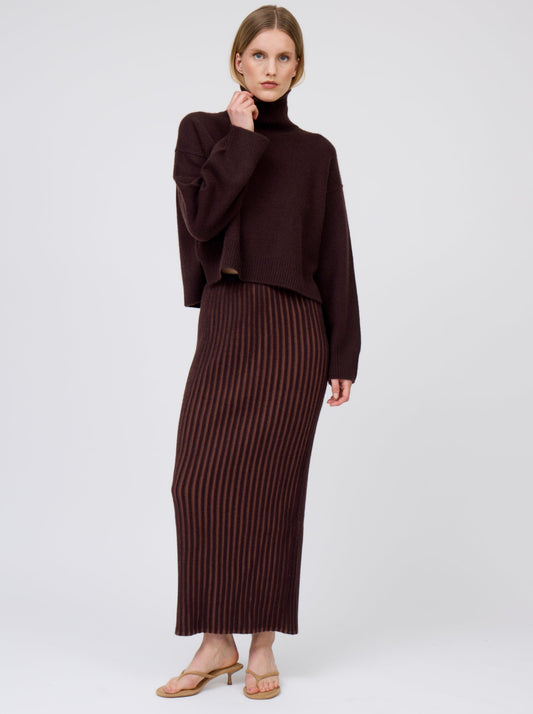Mahogany Brown Cashmere Roll Neck Cropped Jumper