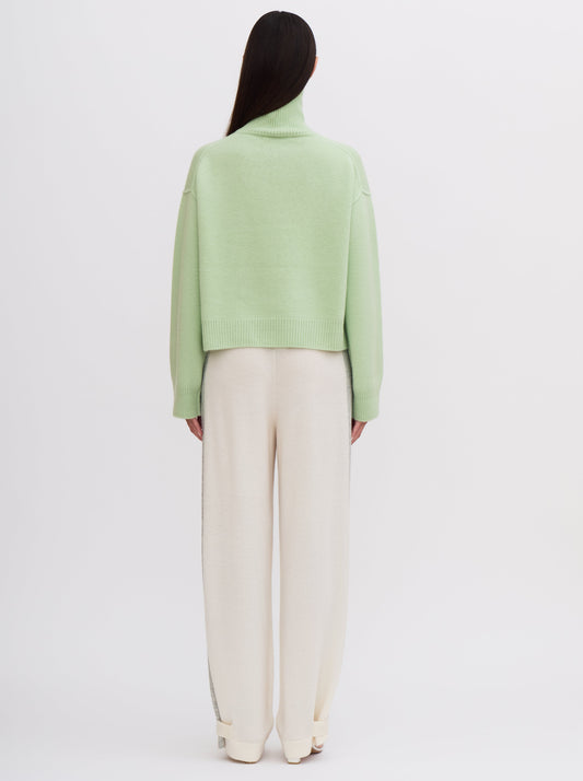 Mint Green Cropped Roll Neck Cashmere Jumper