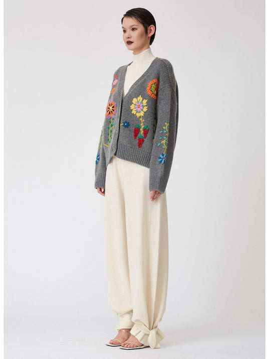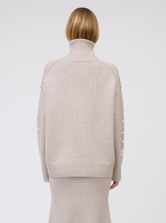 Black Hand Embroidered Cashmere Roll NeckJumper
