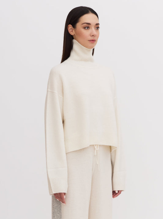 White Cropped Roll Neck Cashmere Jumper