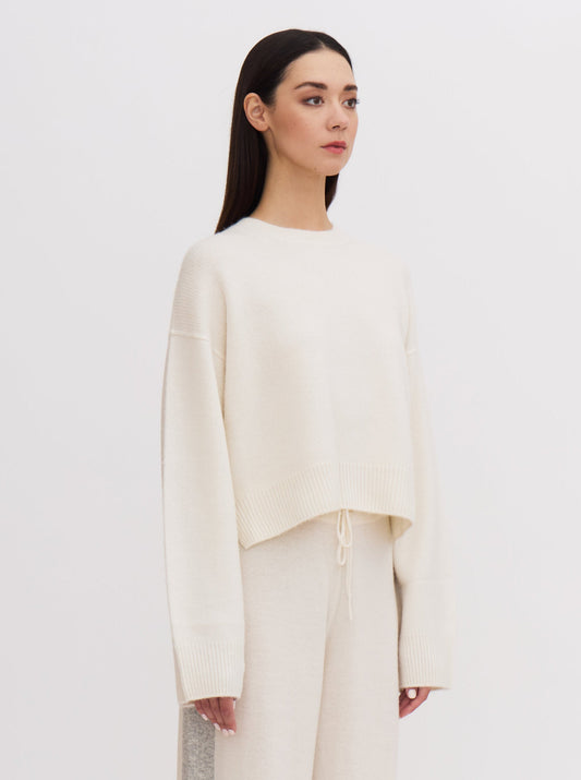 White Cropped Round Neck Cashmere Jumper