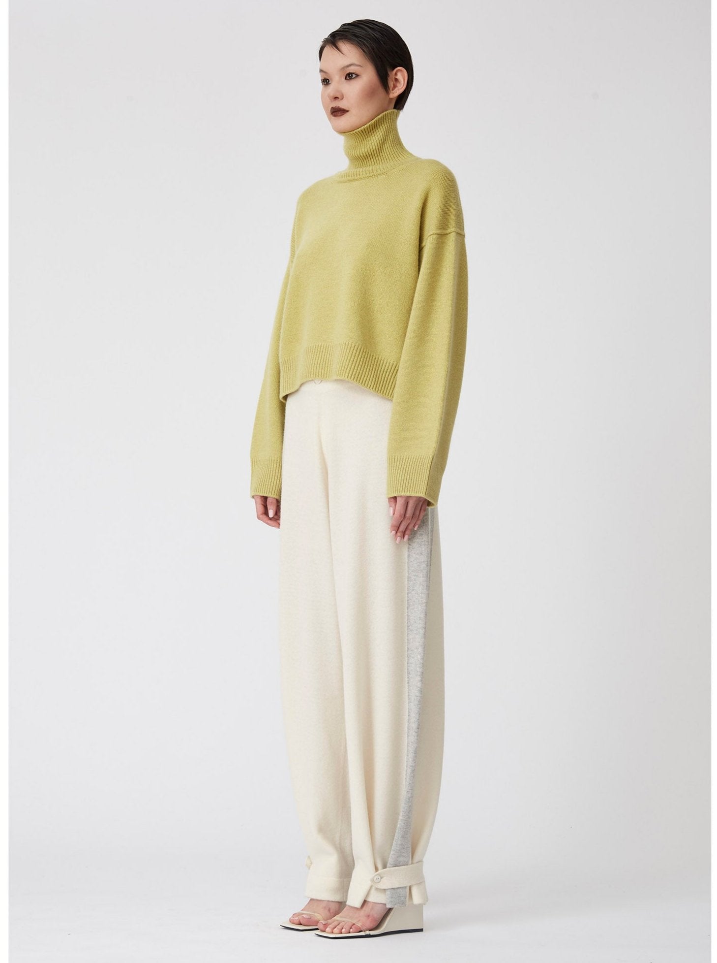 Lime Green Cropped Roll Neck Cashmere Jumper