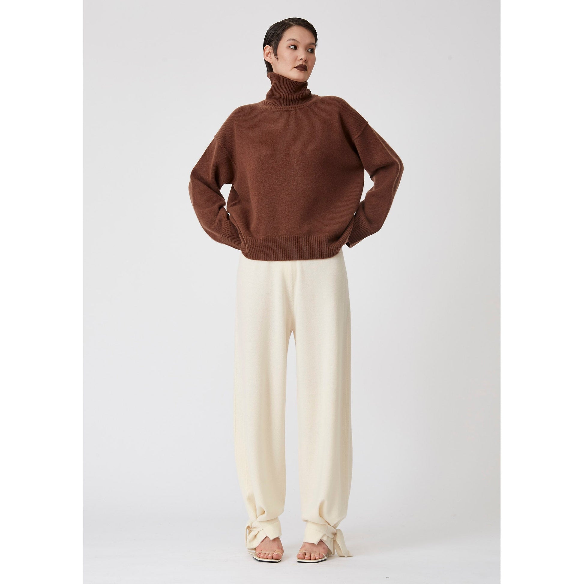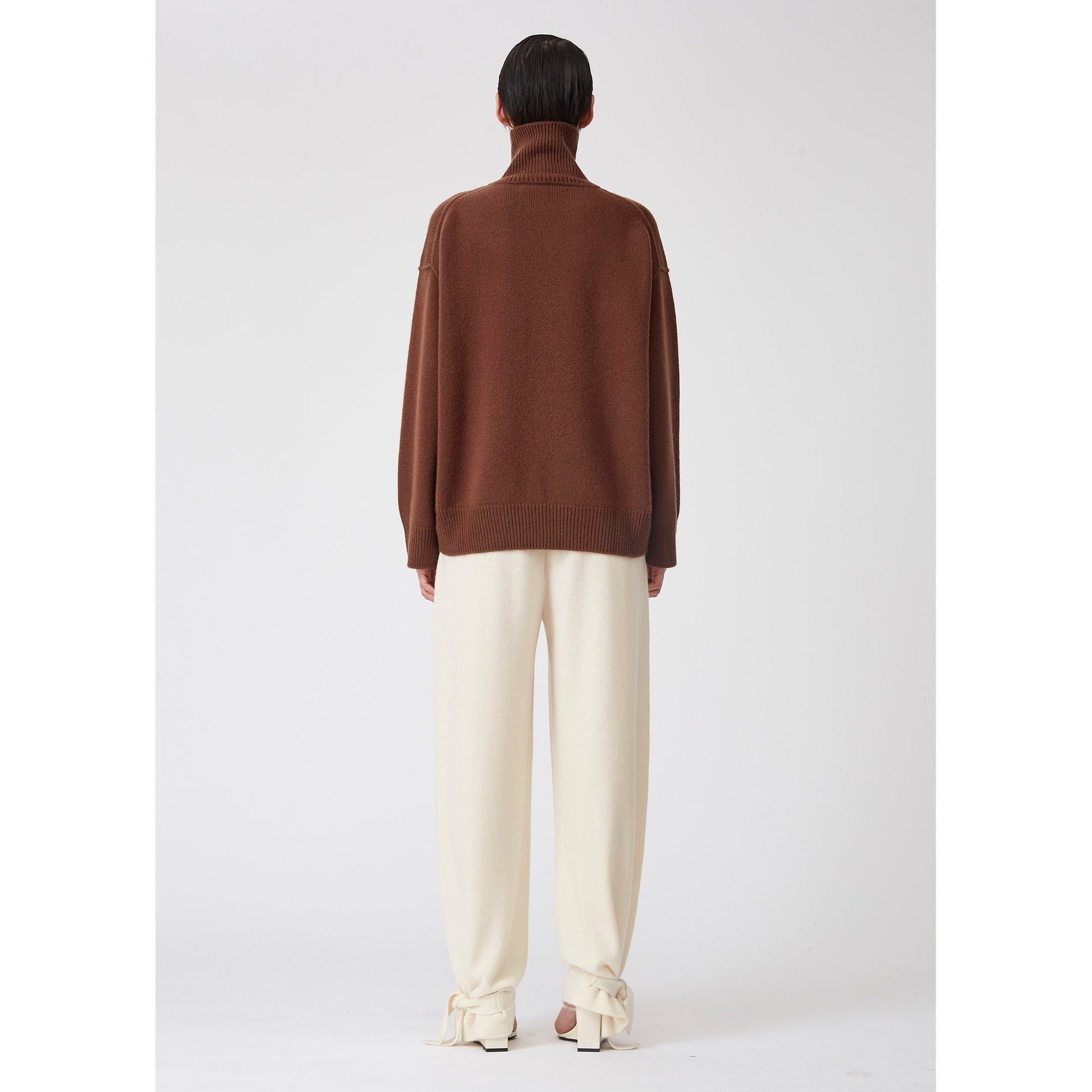 Chocolate Brown Oversized Roll Neck Cashmere Jumper