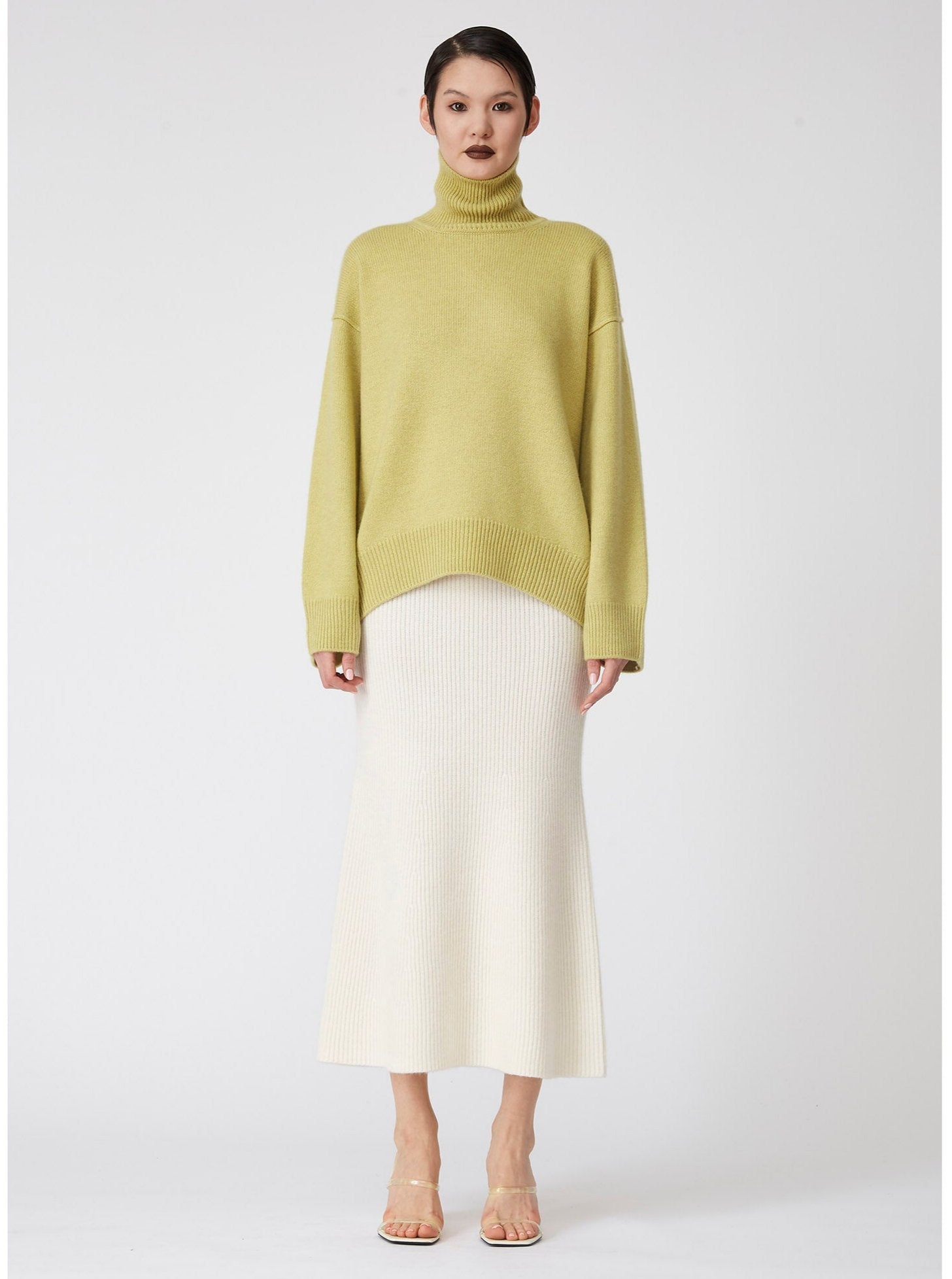 Lime Green Oversized Roll Neck Cashmere Jumper