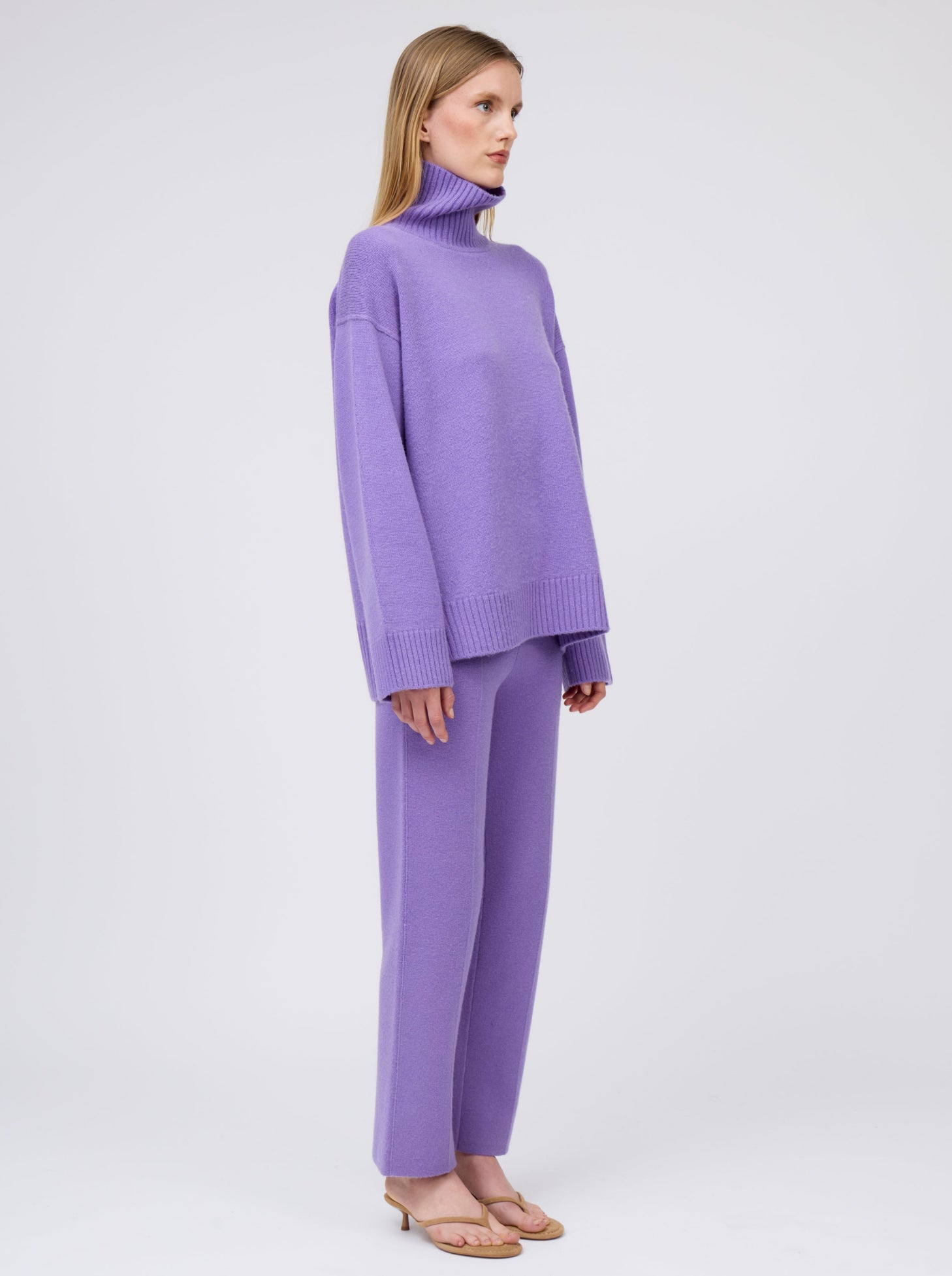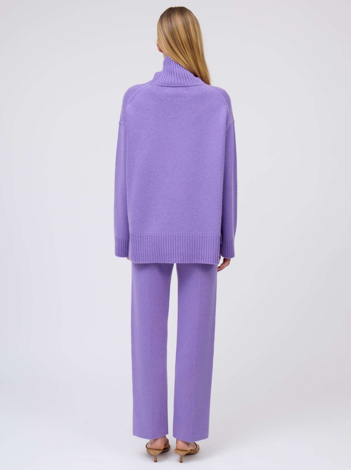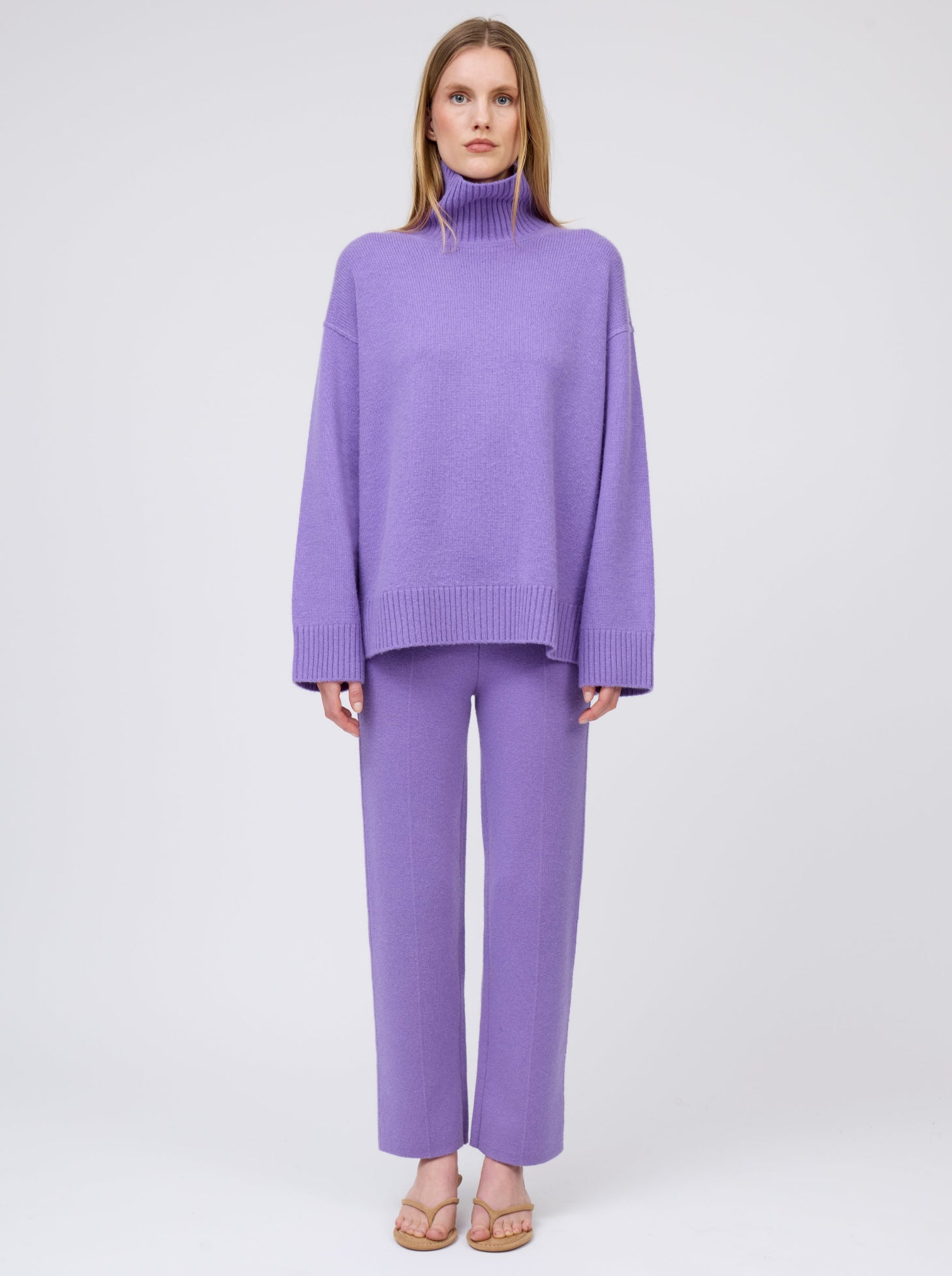 A new twist on our treasured oversized roll neck jumper in pure Mongolian cashmere: this season the jumper has a straight cut, with generous one-size fit, wide, long sleeves and a deep, ribbed hem with side slits. Available here in a rich jewel tone of purple.